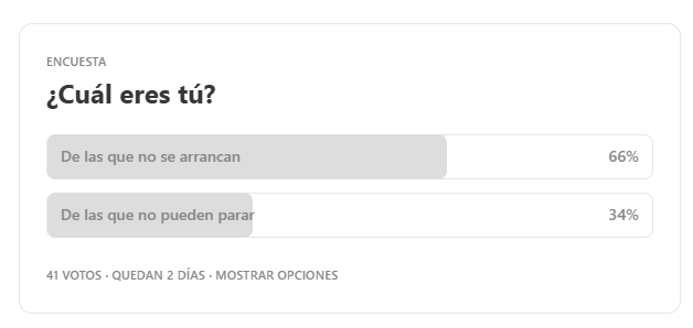 La semana pasada hice una encuesta preguntando si eres más de las personas que se frenan a la hora de lanzarse a la piscina (con proyectos u objetivos) o de las que no pueden parar. Y bueno…